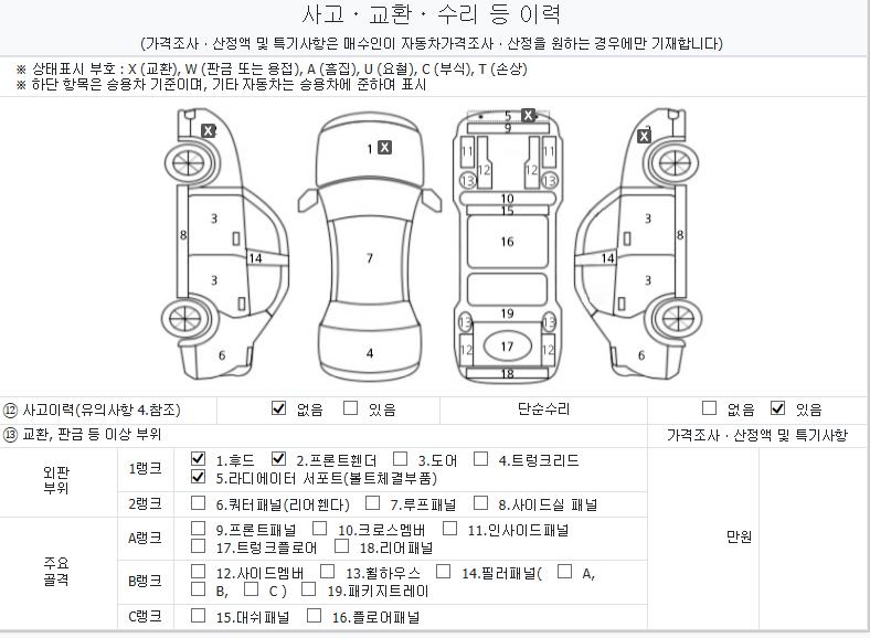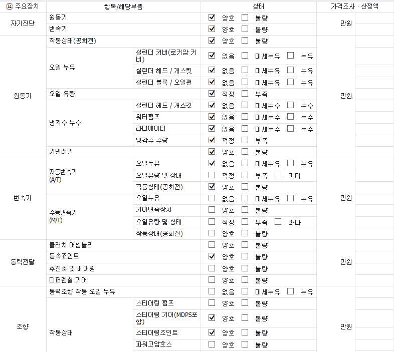 간혹 가다가 중고차를 구입하는 사이트 같은 곳을 보시면 성능점검기록부를 업로드 안한 곳들이 많아서 불안불안 하시는 분들이 많으신데요, 창원중고차 한우카 같은 경우 모든 차에 성능점검기록부, 보험이력을 조회할 수가 있어서 정말 좋았답니다. 요건 더 뉴 쏘렌토 중고차의 성능점검기록부인데요, 관심이 있으신 분들께서는 하나하나 꼼꼼히 살펴보시면 좋으실 거 같아요 !